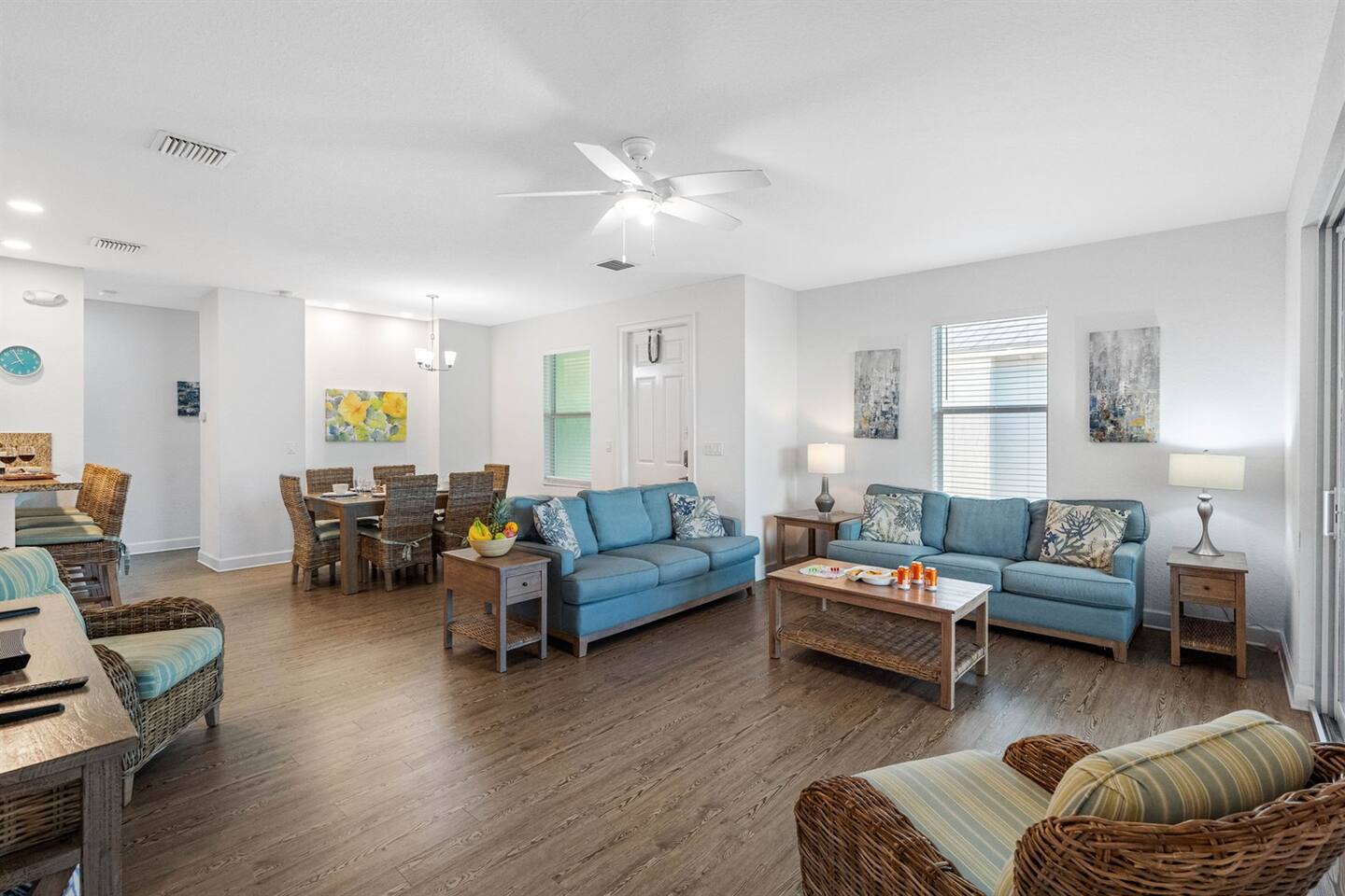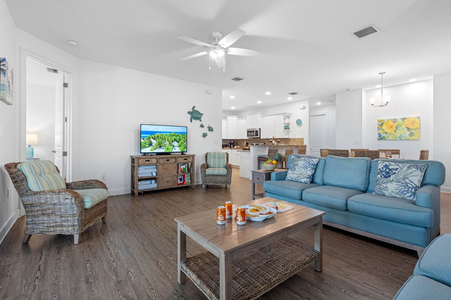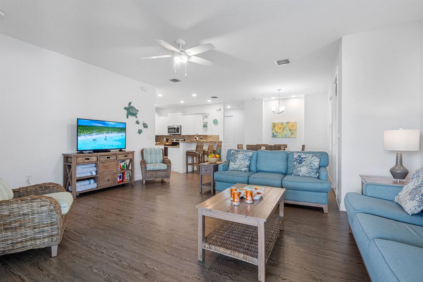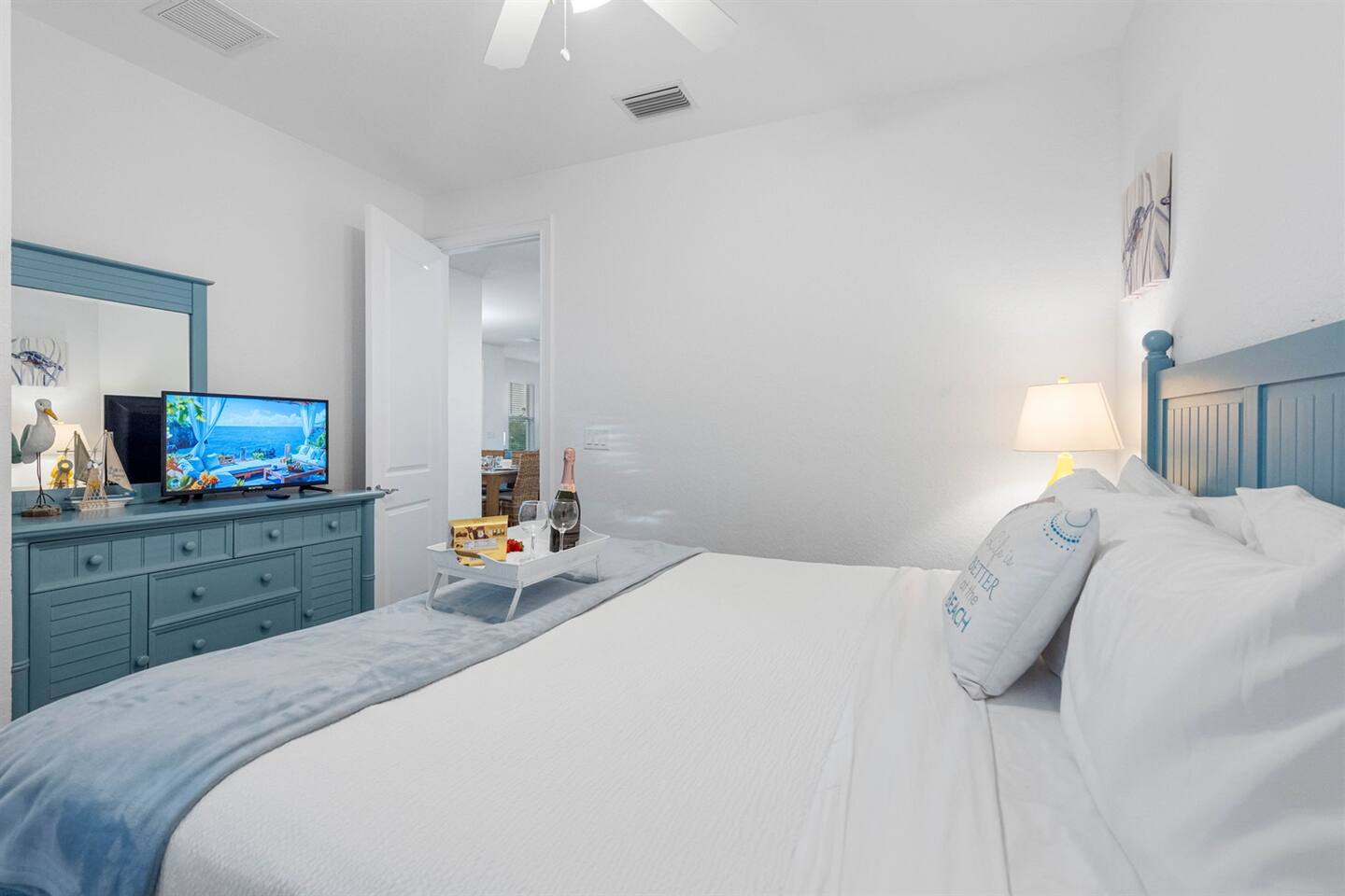 Living Area: Step into a warm and inviting living space featuring a comfortable and stylish sofa, perfect for relaxing with family or friends. The living area offers direct access to the balcony, where you can unwind while enjoying fresh air and serene views. Kitchen: The kitchen is fully equipped with modern appliances, including a refrigerator, stove, microwave, and dishwasher. It boasts sturdy white cupboards that offer plenty of storage space, making it a functional and convenient spot to prepare meals. Dining Area: Enjoy meals together in the dining area, which includes a spacious 6-seater dining table for formal gatherings. For casual dining, there’s a 3-seater dining counter that adds flexibility and style. Bedrooms: Bedroom 1: Features a luxurious king-size bed and an ensuite bathroom for added privacy and comfort. Bedroom 2: Furnished with a cozy queen-size bed, perfect for a restful night’s sleep. Bedroom 3: Offers another king-size bed, providing ample space and comfort. Bedroom 4: Comes with two twin beds and its own ensuite bathroom, ideal for guests or children. Bathrooms: Bathroom 1 (Ensuite to Bedroom 1): Includes a shower and toilet, offering convenience and privacy. Bathroom 2: Features a combination tub/shower and toilet, making it versatile for different preferences. Bathroom 3 (Ensuite to Bedroom 4): Equipped with a combination tub/shower and toilet, perfect for guests staying in Bedroom 4. Laundry Area: A dedicated laundry area is equipped with a complete washer and dryer set, making it easy to keep your clothes fresh during your stay. Outdoor Amenities: Pool: Relax and soak up the Florida sunshine by the beautiful outdoor pool. The pool area offers stunning views of the canal, creating a tranquil oasis. Private Dock: The property features a private dock where you can enjoy the peaceful surroundings and scenic views of the canal. It’s perfect for fishing, kayaking, or simply taking in the serene waterfront atmosphere. This property combines comfort, style, and convenience, making it an ideal choice for your stay. Whether you're enjoying the modern indoor amenities or the picturesque outdoor spaces, this home provides the perfect setting for relaxation and memorable moments.